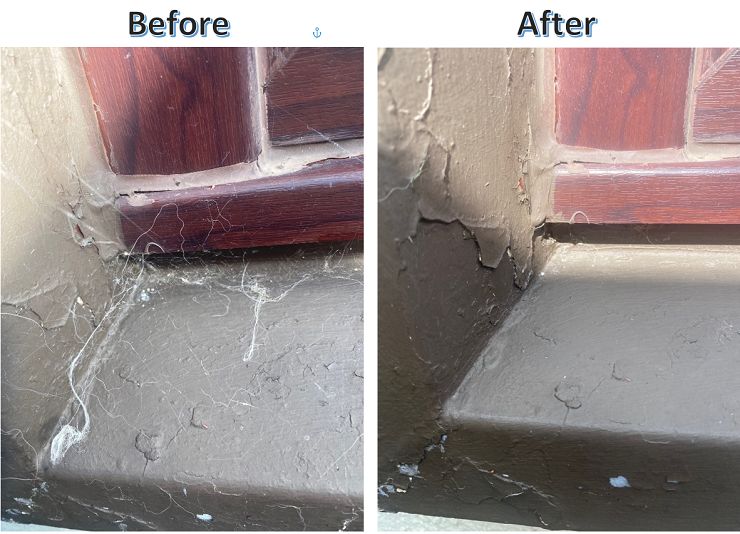Getting rid of spider web around the windows, frames and vents is the norm when cleaning with water fed pole systems.